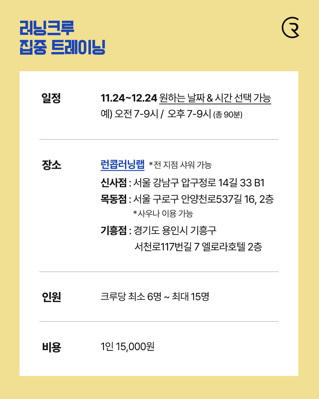 러닝크루 대상 집중 트레이닝 : 2026 당신의 전성기는 런콥러닝랩에서!