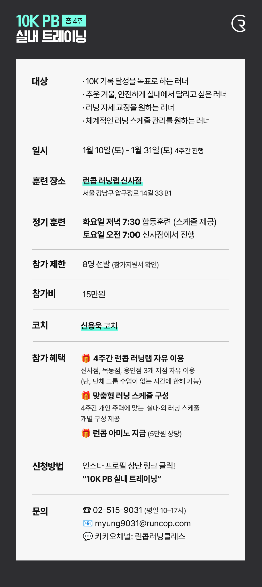 10K PB 실내 트레이닝 with 신용욱 코치